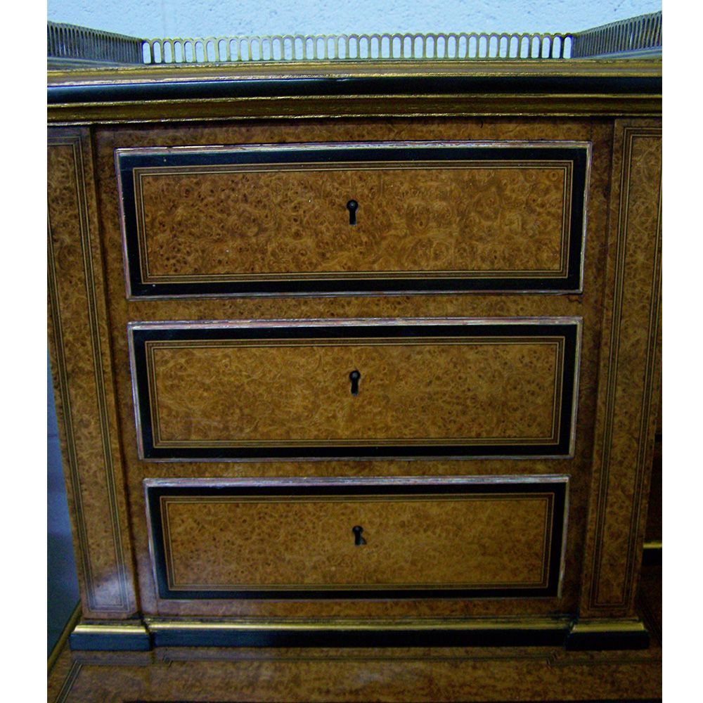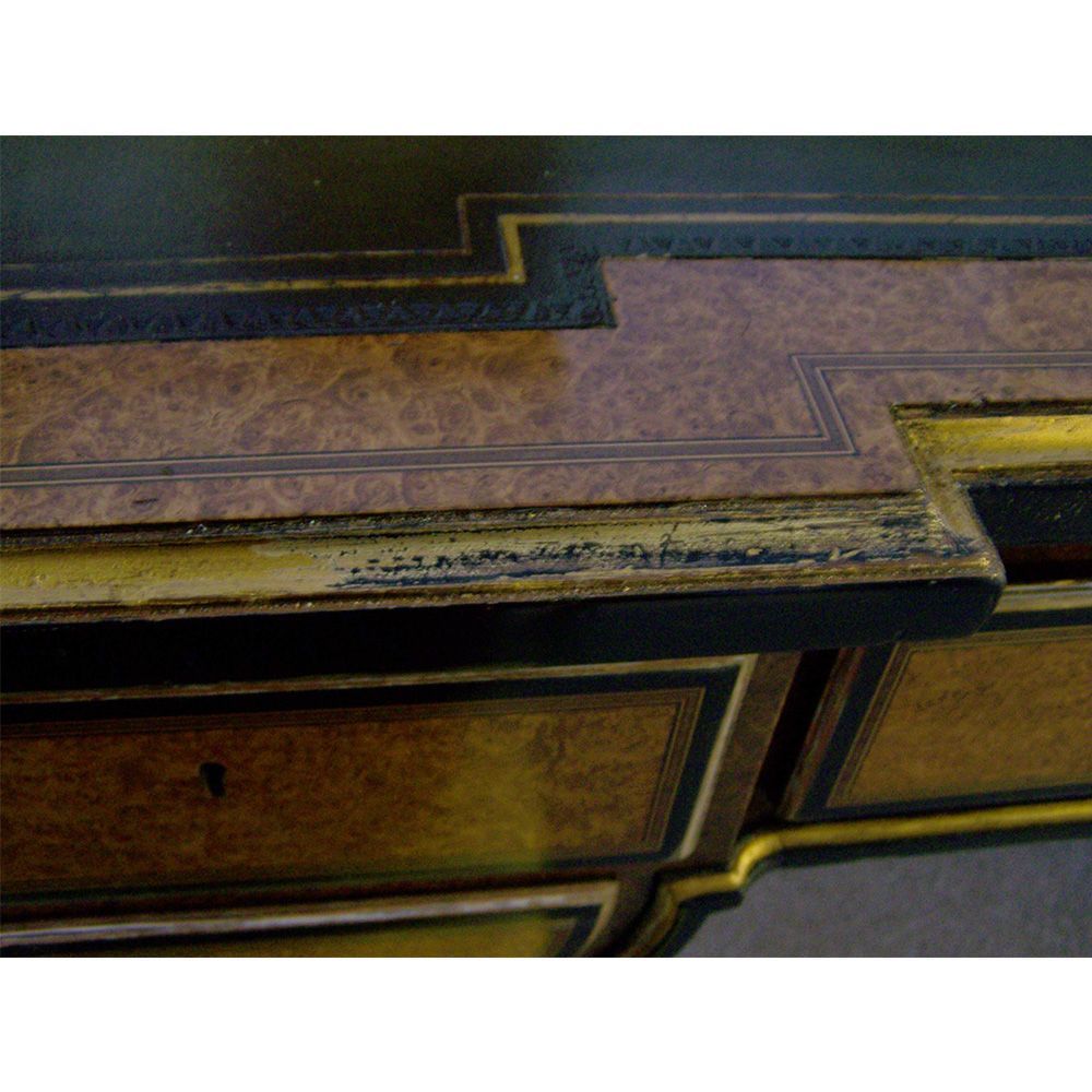 Desk re-gild. Removed the old worm gilding repairs to the gesso, re-gilded.