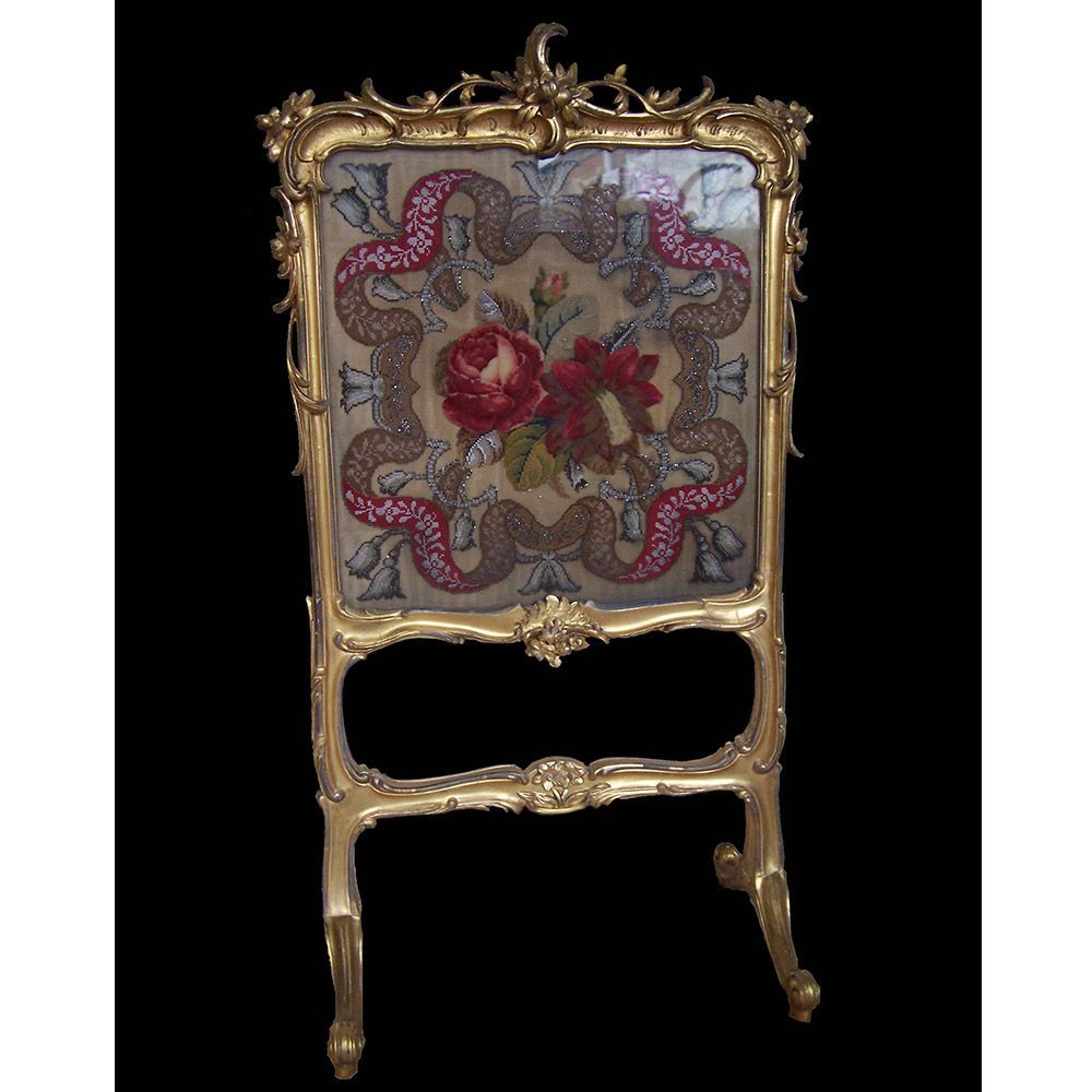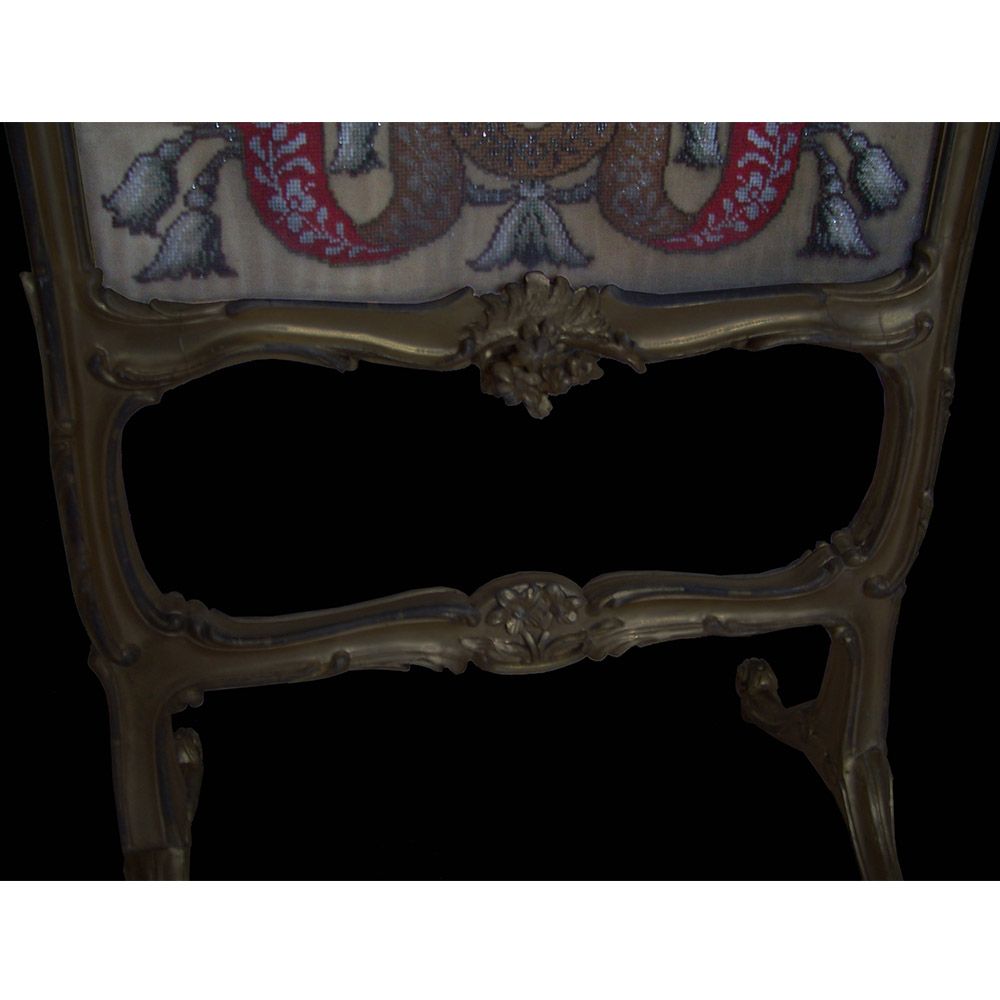 Fire screen restoration. Gilding cleaned, repairs to the gesso, repairs gilded and aged to match.