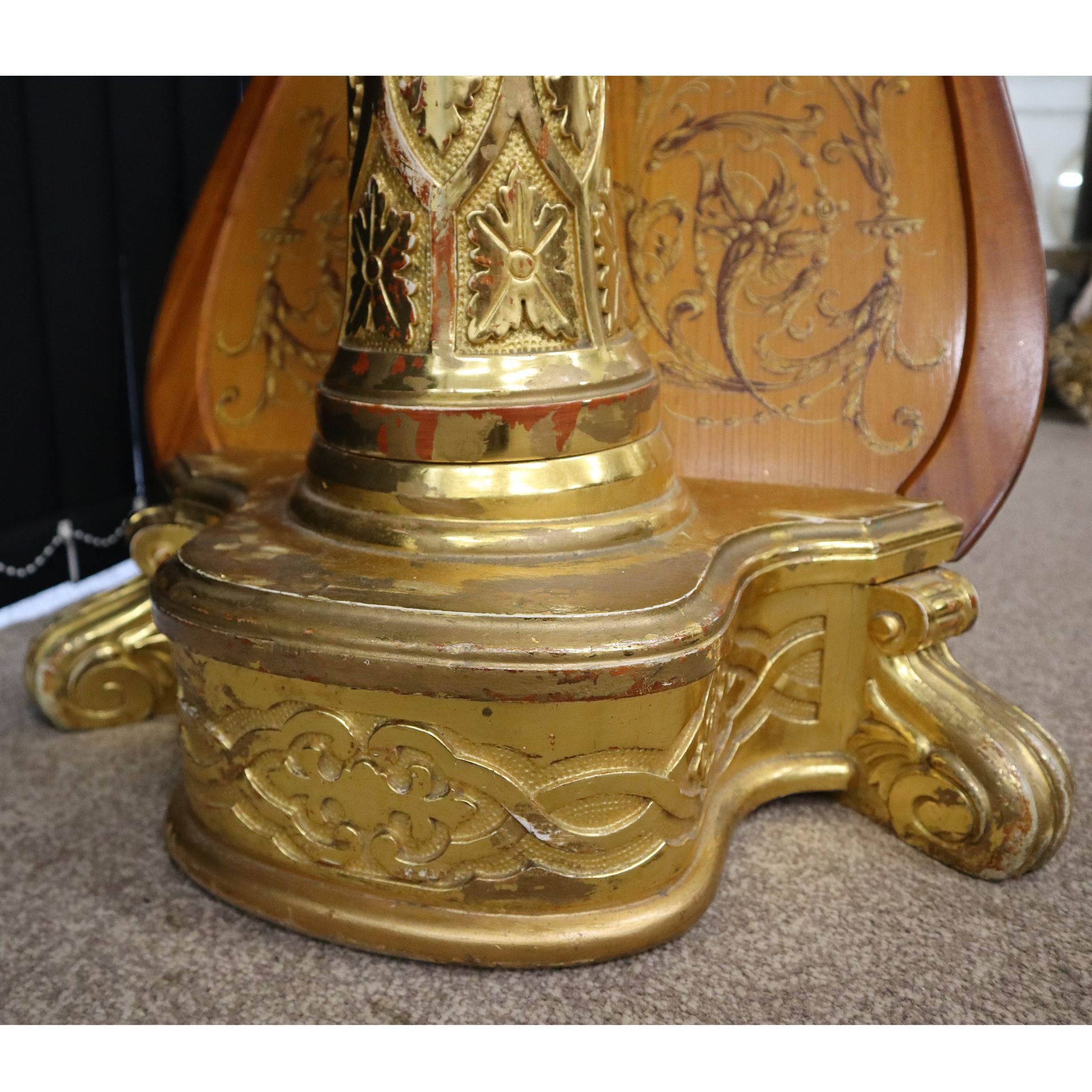 Wooden table base gilded.
