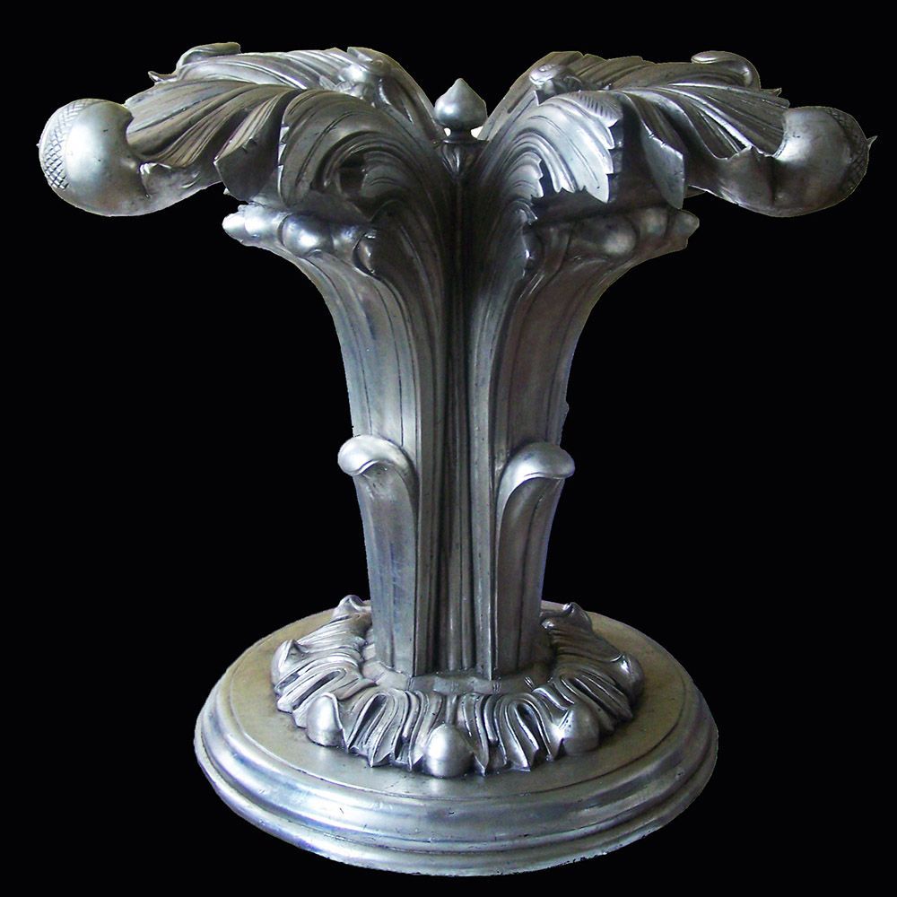 Wooden table base gilded in aluminium leaf.